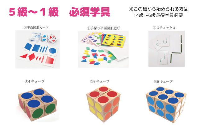 | 13級 | 4冊(No.5〜8) | 2冊(天地パズル (1)、平面位置) | バッタ(1) | 2才〜 | 12級 | 4冊(No.9〜12) | 2冊(線を創る (2)、天地パズル (2)) | くり | 2才6ヶ月〜 | 11級 | 4冊(No.13〜16) | 2冊(マグプレート (3)、ちぎり絵) | あひる | 3才〜 | 10級 | 4冊(No.17〜20) | 2冊(ペリカンパズル (1)、左右弁別) | くじゃく | 3才6ヶ月〜 | 9級 | 4冊(No.21〜24) | 2冊(ペリカンパズル (2)、積木の数) | きつね | 4才〜 | 8級 | 4冊(No.25〜28) | 2冊(3 方向知覚、長方形分割 (1)) | ぶた(1) | 4才6ヶ月〜 | 7級 | 4冊(No.29〜32) | 2冊(ひも模様、同類図形) | ねこ | 5才〜 | 6級 | 4冊(No.33〜36) | 2冊(5方向知覚、立体認知 / 面) | いぬ | 5才6ヶ月〜 | 5級 | 4冊(No.37〜40) | 2冊(絵の合成分解、積み木 / 推理) | かえる | 6才〜 | 4級 | 4冊(No.41〜44) | 2冊(折り重なり図形、4 ナンプレ) | 家 | 6才6ヶ月〜 | 3級 | 4冊(No.45〜48) | 2冊(長方形分割 (2)、立体認知 / 頂点) | さいふ | 7才〜 | 2級 | 4冊(No.49〜52) | 2冊(にげみち、空の上から) | ひよこ | 7才6ヶ月〜 | 1級 | 4冊(No.53〜56) | 2冊(タイル (1)、カモシカパズル) | こい | 8才〜 |