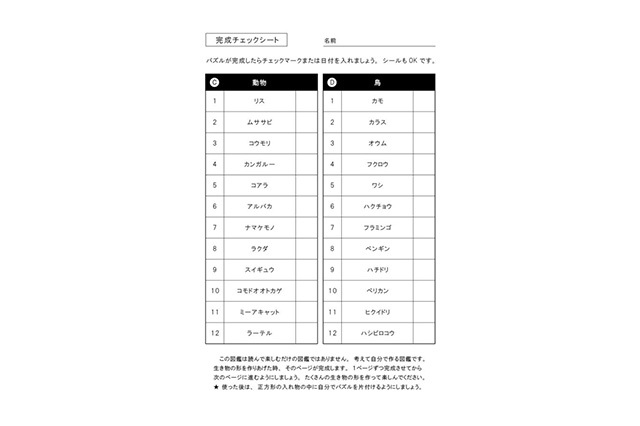 - (1)カモシカパズルお手本集 生き物図鑑? 動物&鳥(1冊24種類) ※解答付き